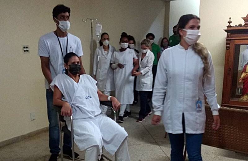 De acordo com o Corpo de Bombeiros, foi simulado um sinistro na enfermagem feminina sendo realizada a evacuação de três pacientes, sendo um acamado, um cadeirante e um com plena capacidade locomotora.