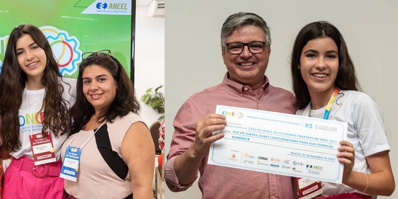 O primeiro lugar foi premiado, durante a solenidade, que aconteceu na última semana, no dia 07 de dezembro, em Brasília. Pela Energisa Minas Rio, Hellen Áurea Moreira Benis, da Escola Estadual Prefeito Antonio Arruda, de Guiricema, foi a vencedora, junto com a professora Alaíde Vimieiro Toledo Barbosa. No evento de premiação em Brasília, estiverem presentes o primeiro colocado de cada distribuidora, que participou da ONEE 2022, totalizando 34 alunos vencedores, que receberam um cheque de R$ 3.000,00 para serem utilizados em cursos livres que contribuem para a formação do aluno.