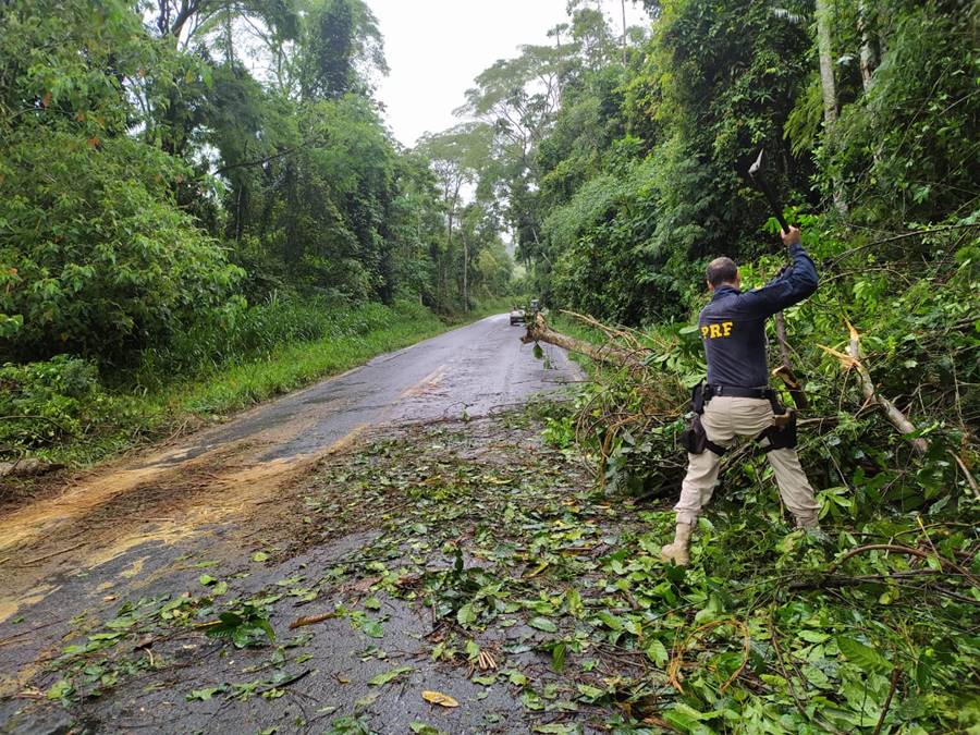 De acordo com a PRF, agentes iniciaram a retirada da árvore, porém o tronco maior ainda ocupa meia pista no sentido crescente até a chegada do Corpo de Bombeiros.
