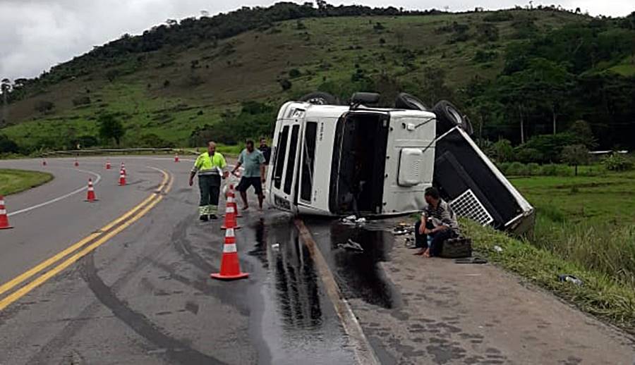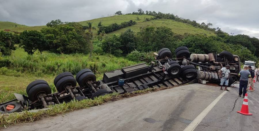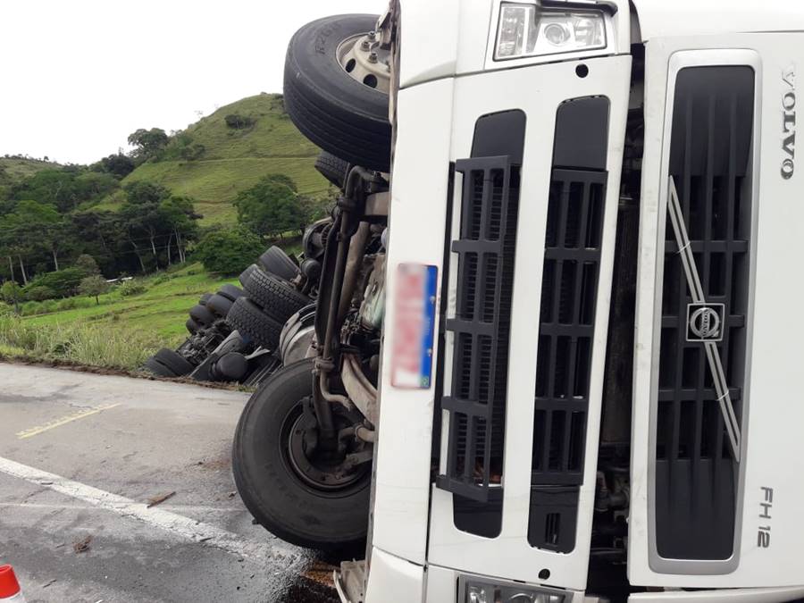 Uma carreta carregada de filé de peito de frango congelado tombou na BR-116, em Leopoldina, na tarde deste sábado, 7 de janeiro. Polícia Rodoviária Federal, Corpo de Bombeiros, SAMU e EcoRioMinas foram acionados.