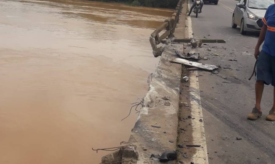 Após a colisão a carreta caiu da ponte e o condutor conseguiu sair antes da submersão. Ele dispensou atendimento médico no local.