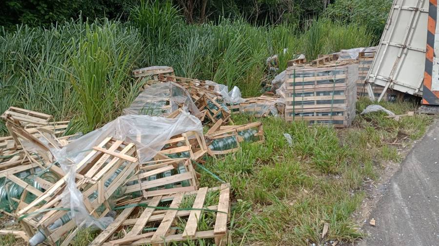 Na mesma curva, um caminhão carregado de vidro tombou na quinta-feira (19).