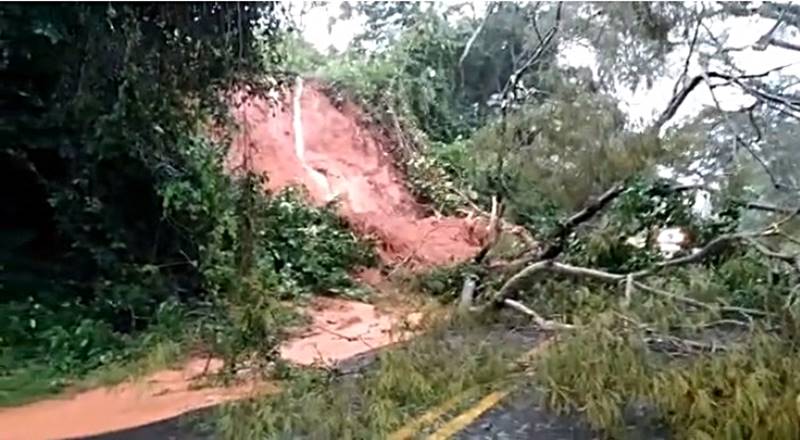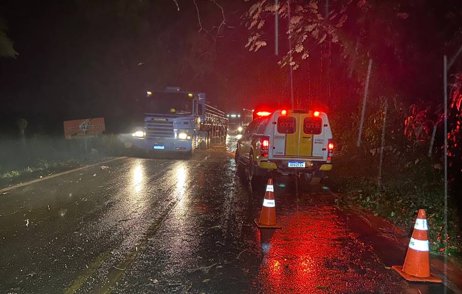 De acordo com a Polícia Militar Rodoviária, uma barreira e uma árvore caíram sobre a pista de rolamento na altura do Km 40 da MGC-393 entre Além Paraíba e Volta Grande.