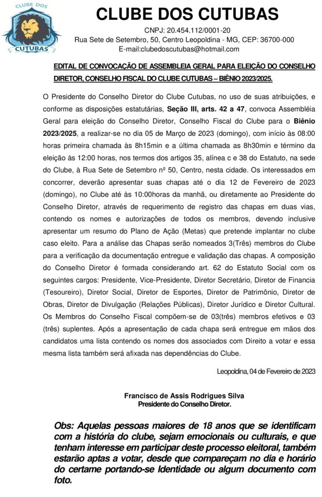 Edital de Convocação para Assembleia Geral Ordinária do Clube Cutubas