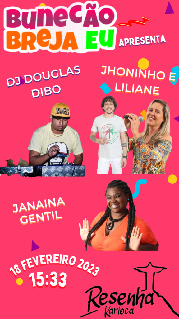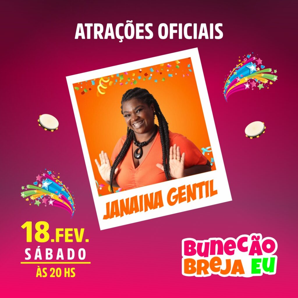 Contando com atrações empolgantes, o Bloco BunecãoBrejaEu terá na abertura do evento o DJ Douglas Dibo, que vai tomar conta do som. Depois apresenta-se a banda Jhoninho e Liliane e em seguida sobe ao palco a cantora Janaina Gentil para realizar o show.