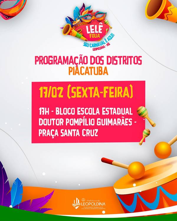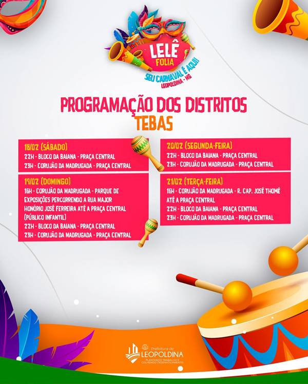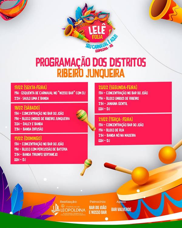 O Lelê Folia 2023 acontece entre os dias 18 e 21 de fevereiro, na avenida Getúlio Vargas, no palco de eventos no quarteirão da Estátua da Princesa Leopoldina.