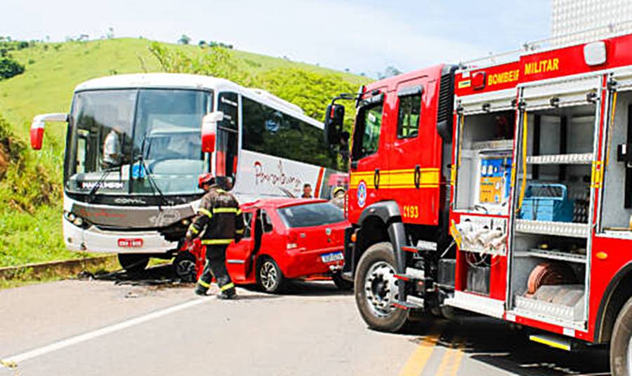 Segundo o Corpo de Bombeiros, o acidente ocorreu próximo ao distrito de Itamuri, ocasião em que o condutor do VW/Gol perdeu o controle da direção, invadiu a contramão e colidiu no ônibus.