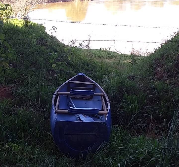 Embarcação artesanal utilizada pelos dois homens que desapareceram no Rio Pomba no último domingo (5).
