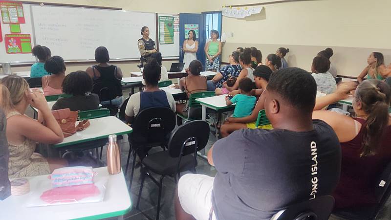 Solicitada pela direção da Escola, localizada no Bairro Alto do Cemitério, a palestra foi ministrada pelo Capitão Araújo e a Sargento Edleny nesta terça (7), véspera do Dia Internacional da Mulher.