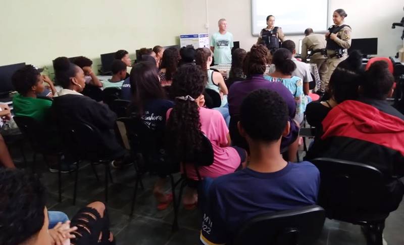 Militares do 68 BPM e Polícia Militar Rodoviária palestram na Escola Barão de São Geraldo, em Angustura, distrito de Além Paraíba