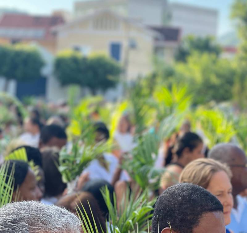 Os fiéis se concentraram na Praça Félix Martins, região central da cidade, para a benção dos Ramos e proclamação do evangelho da entrada do Senhor em Jerusalém.