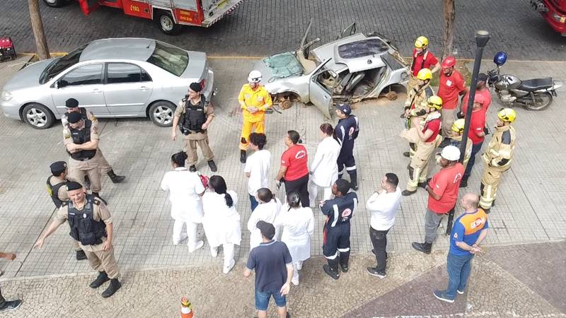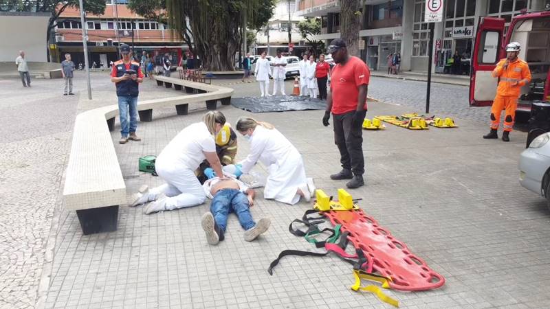 O Corpo de Bombeiros realizou um simulado de acidente de trânsito no Centro de Cataguases nesta sexta-feira, 26 de maio. A ação teve o objetivo de comemorar o primeiro ano de instalação do Posto Avançado da corporação em Cataguases e promover a campanha “Maio Amarelo”.
