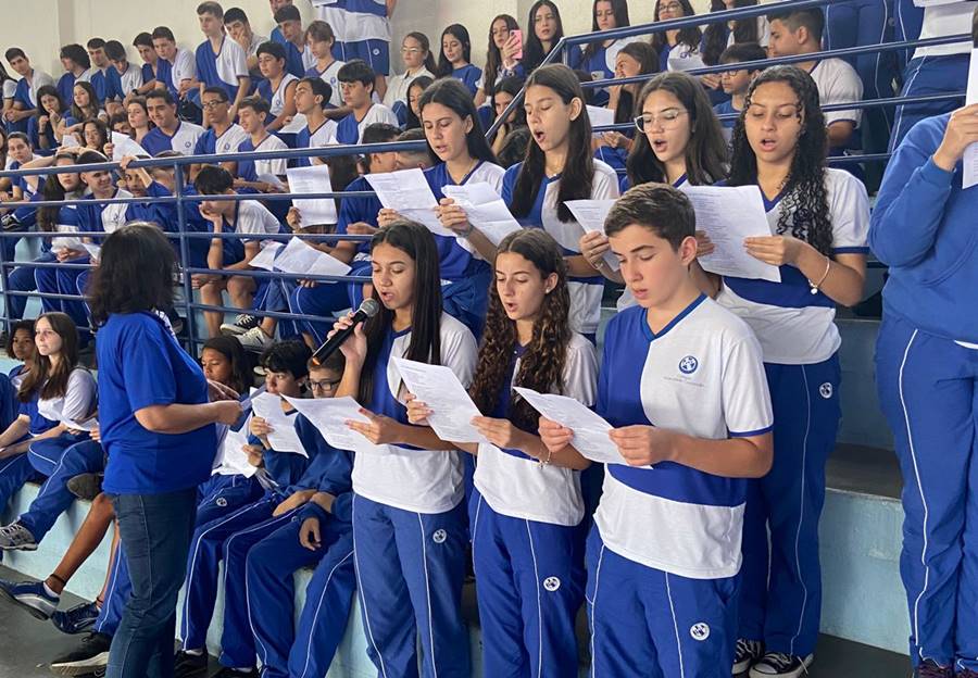 Todos os alunos participaram de uma oração pela PAZ no mundo. Conforme a programação, alunos do 2º e 3º Anos do Ensino Médio cantaram a música “A PAZ”, uma versão de “Heal The World” gravada pelo grupo Roupa Nova.