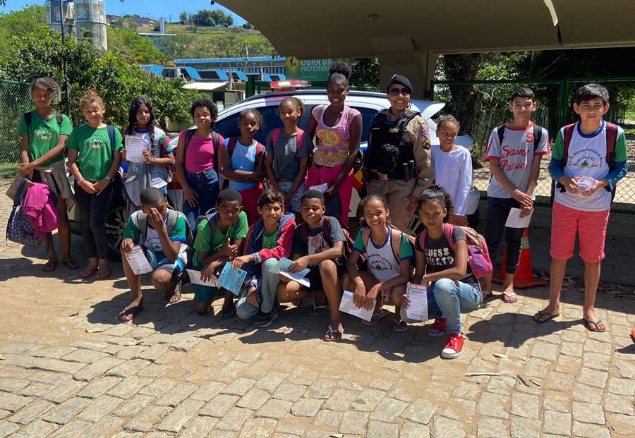 Nesta terça-feira, 19 de setembro, alunos do 6º ano da Escola Municipal Maria Conceição Monteiro de Resende (CAIC) participaram de uma palestra educativa realizada pela militar Cabo Josilaine, da Patrulha Escolar de Leopoldina. Durante a ação a policial promoveu a conscientização dos estudantes, além de uma blitz educativa no Bairro Eldorado onde materiais educativos foram distribuídos.