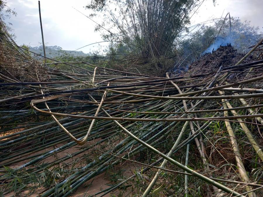 Um incêndio atingiu um bambuzal às margens da estrada das Palmeiras, zona rural de Leopoldina, e interditou a via nesta quarta-feira, 27 de setembro.