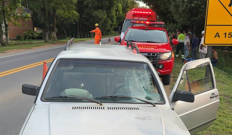 Um acidente envolvendo um automóvel e uma motocicleta foi registrado nesta terça-feira, 5 de dezembro, no perímetro urbano da rodovia BR-116, em Leopoldina, na altura do Bairro Fortaleza.