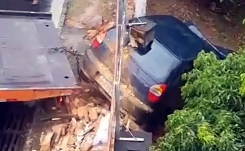 Um carro quase atingiu uma casa após se desprender de um guincho, no município de Laranjal.