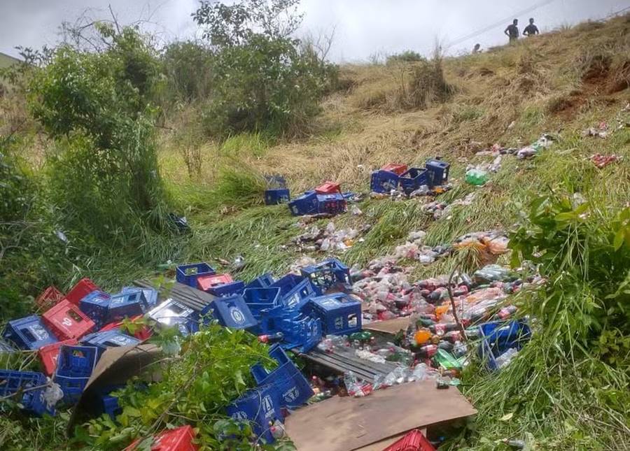 Uma pessoa morreu e outra ficou ferida após um caminhão carregado de bebidas cair em uma ribanceira de 50 metros na manhã desta sexta-feira (1º) no Bairro Vermelho II, em Muriaé.