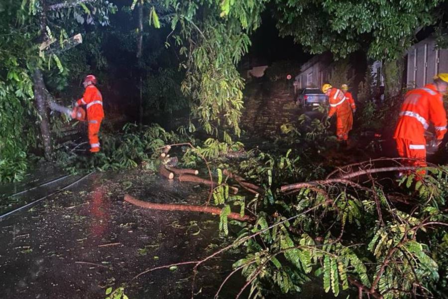 Vários pontos como a Avenida Dante Bruno no Dornelas, próximo ao viaduto no Centro e na BR-116 também na altura do Dornelas, houve quedas de árvores. Militares do Corpo de Bombeiros foram acionados para desobstruir as vias.