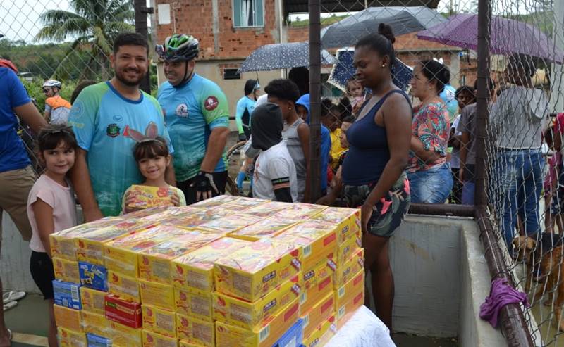 Ciclistas fizeram a alegria de crianças moradoras de bairros de Leopoldina neste domingo, 24 de março, durante uma ação de Páscoa.