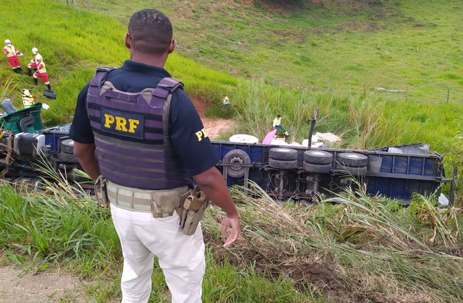 De acordo com a Polícia Rodoviária Federal, o motorista de 40 anos informou que viajava de Guarulhos para Salvador quando perdeu o controle da carreta em uma curva.