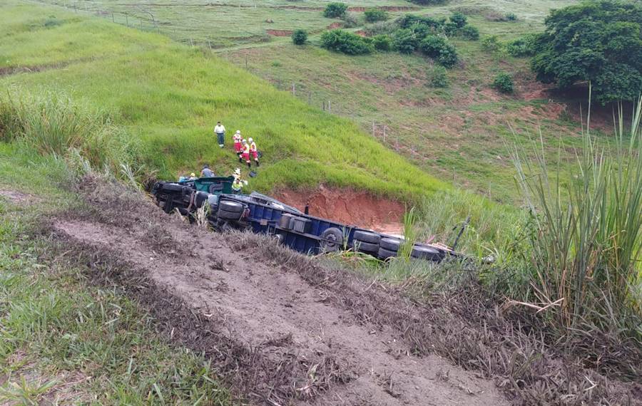Uma carreta carregada com produtos químicos (tinta inflamável, ácido, verniz, solvente entre outros) saiu da pista e caiu num barranco, tombando às margens da rodovia BR-116, em Muriaé, nesta quarta-feira, 10 de abril. O acidente foi registrado na altura do km 668.