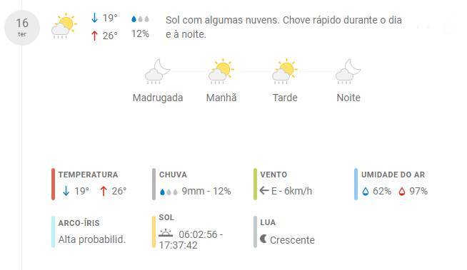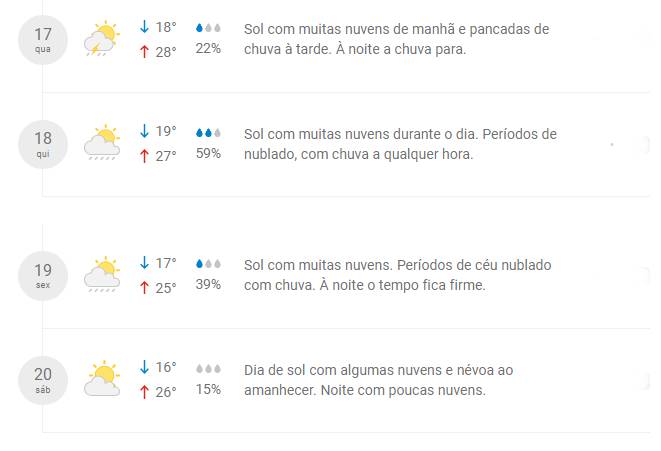 Confira a previsão do tempo para Leopoldina nos próximos dias: