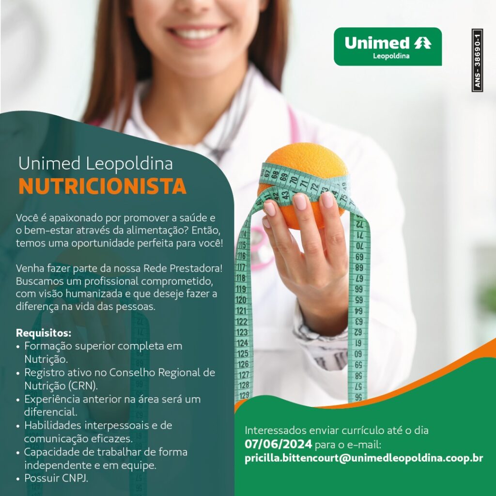 De acordo com as informações, se você é um profissional apaixonado por promover saúde e o bem-estar através da alimentação, então a Unimed tem uma oportunidade perfeita para você. “Buscamos um profissional comprometido, com visão humanizada e que deseje fazer a diferença na vida das pessoas”.