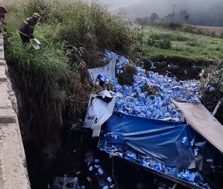 Um caminhoneiro morreu após o caminhão que dirigia cair em um córrego na manhã desta segunda-feira (3) na BR-267, em Maripá de Minas.