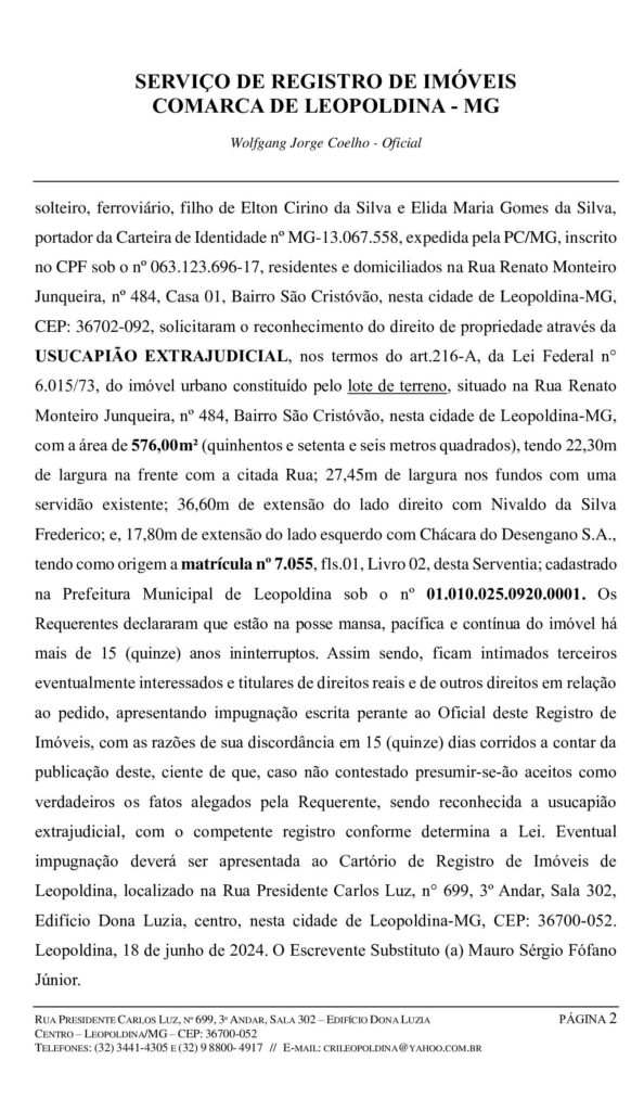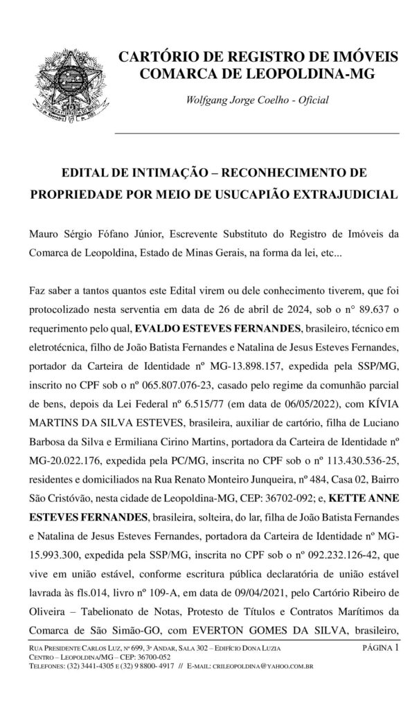 Edital de Intimação – Reconhecimento de propriedade por meio de Usucapião Extrajudicial