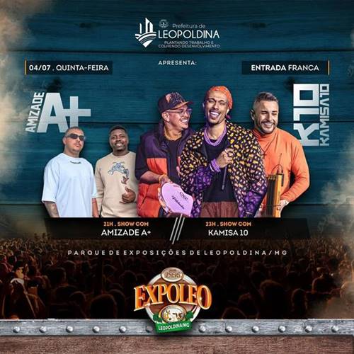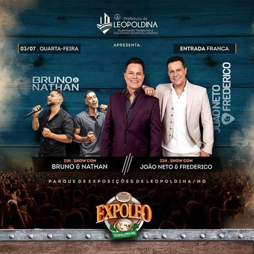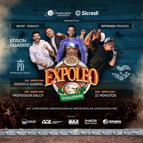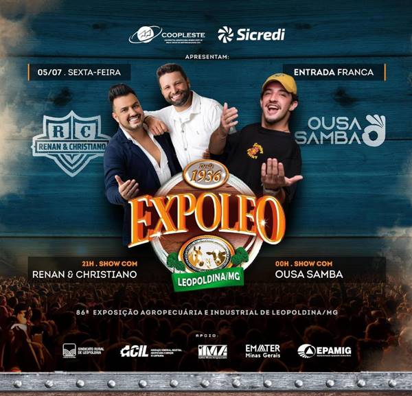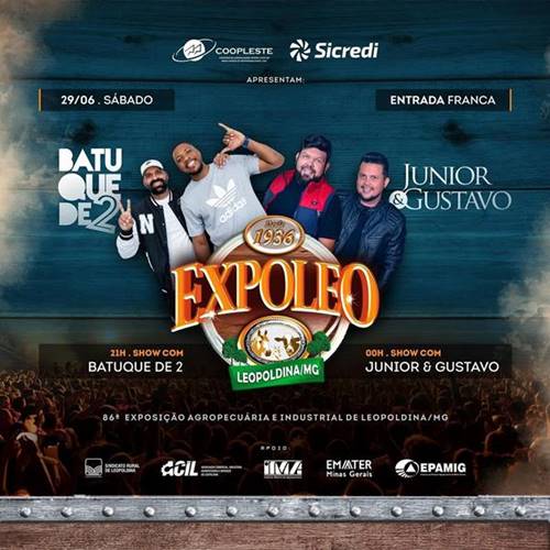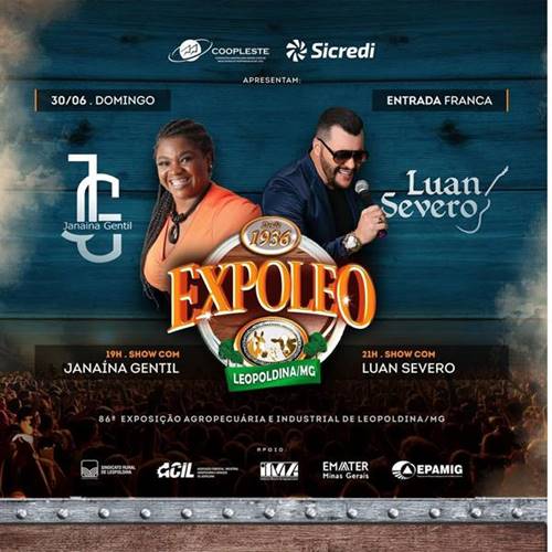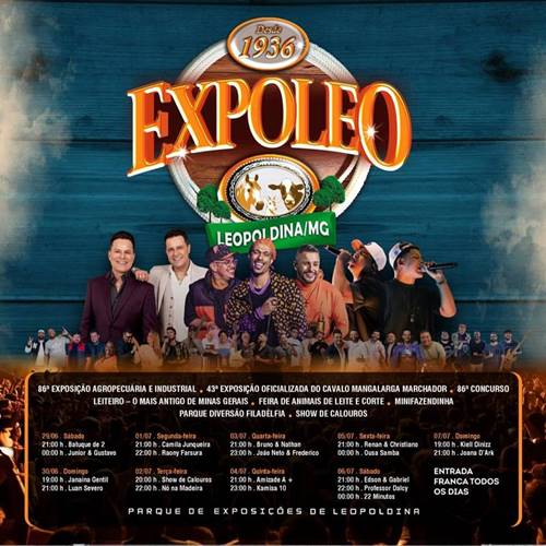 A 86ª Exposição Agropecuária e Industrial de Leopoldina, maior e mais tradicional evento do município e um dos mais aguardados da região, tem início neste sábado, dia 29 de junho, com intensa programação até o dia 7 de julho no Parque de Exposições José Ribeiro dos Reis (Zequinha Reis).