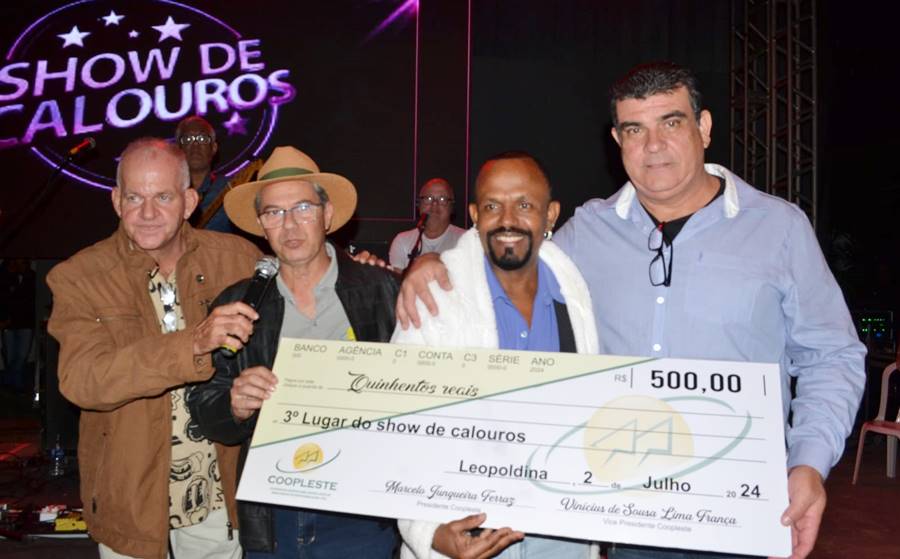 O Show de Calouros reuniu crianças, adolescentes e adultos que interpretaram belíssimas canções. O Show de Calouros da Expoleo 2024 distribuiu R$3.000,00 em prêmios, sendo R$1.800,00 para o primeiro lugar, R$700,00 para o segundo e R$500,00 para o terceiro colocado.