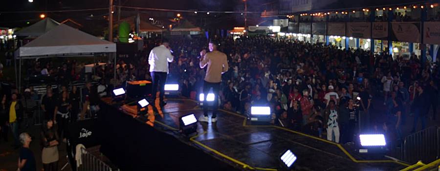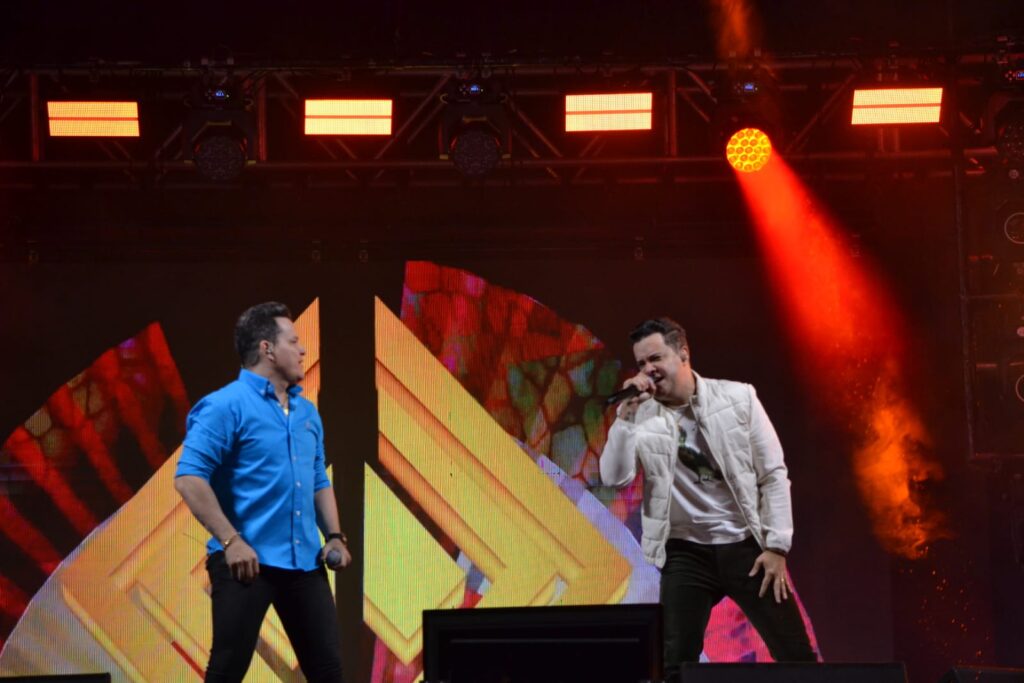Milhares de pessoas de Leopoldina e toda a região prestigiaram a programação que também contou com a apresentação da dupla Bruno & Nathan (foto abaixo), embalando a multidão com sucessos sertanejos.
