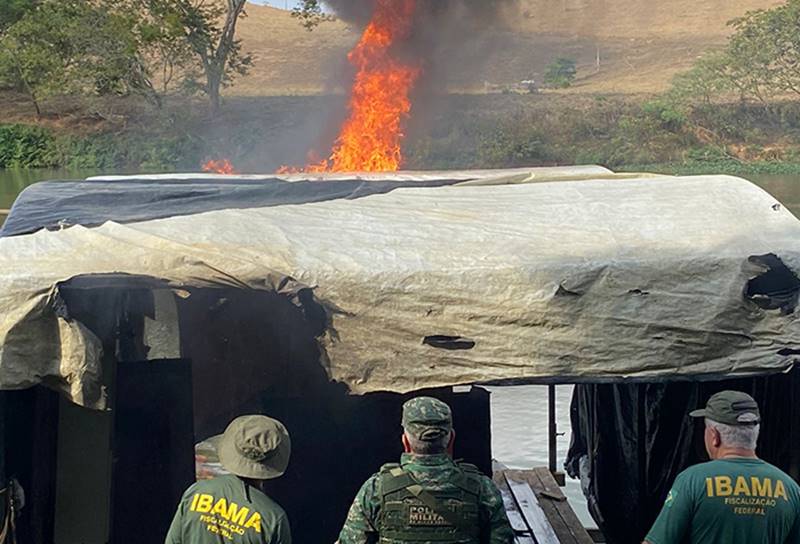 Ambas as dragas foram queimadas, uma vez que não havia meios para removê-las do local, informou a PMMAmb.