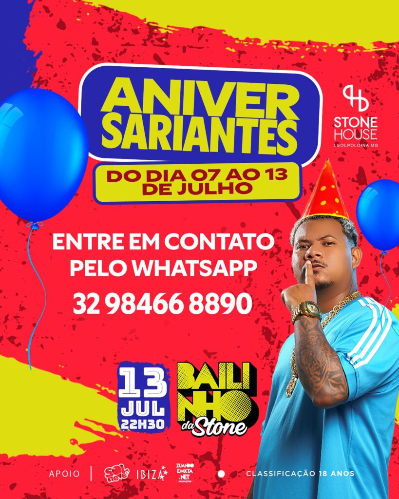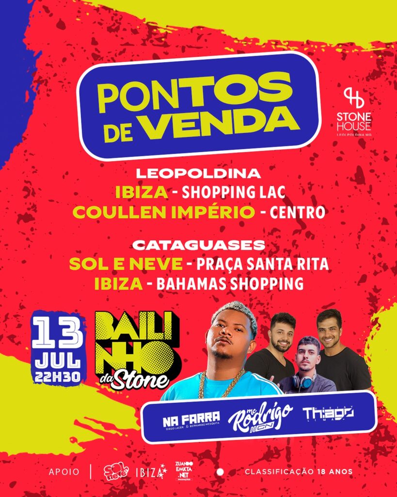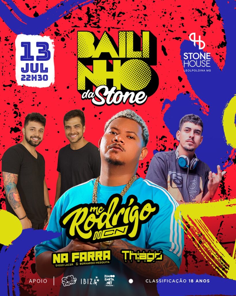 O final de semana chega com o Bailinho da Stone neste sábado, 13 de julho, na Casa de Eventos mais popular da região. A programação especial conta com o MC Rodrigo do CN, Na Farra e DJ Thiago Lima.