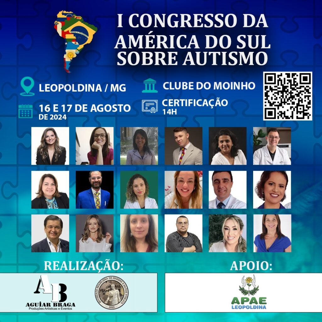 Acontece em Leopoldina nos dias 16 e 17 de agosto o 1° Congresso da América do Sul sobre autismo. O evento ocorre no Clube do Moinho e reúne especialistas renomados para compartilhar conhecimentos, experiências e estratégias que moldarão o futuro do autismo na América do Sul.