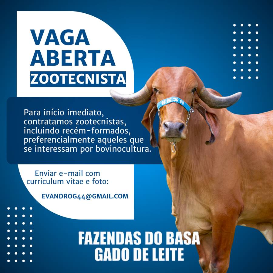 A Fazendas do Basa Gado de Leite divulgou nesta quarta-feira, 14 de agosto, a abertura de uma vaga para Zootecnista.