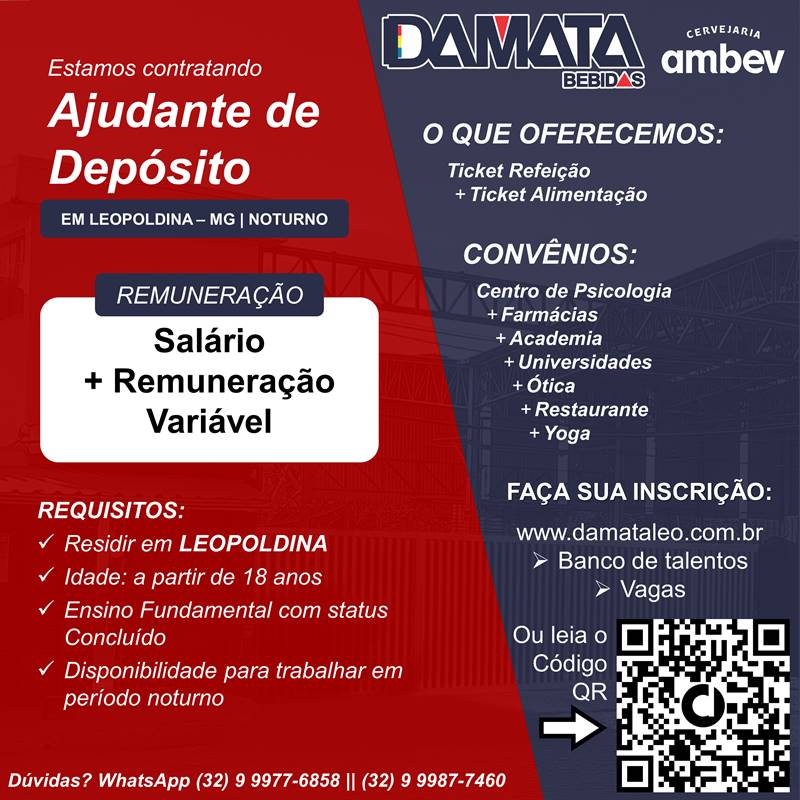 Damata divulga vaga para ajudante de depósito noturno em Leopoldina
