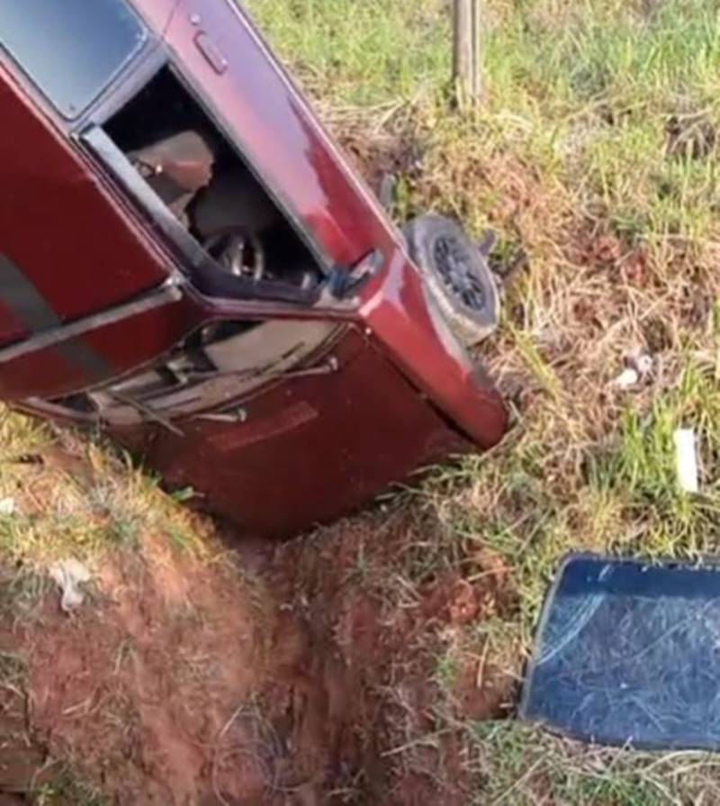 Um carro caiu em uma vala localizada às margens da rodovia BR-116, em Leopoldina, neste domingo, 22 de setembro. A ocorrência foi registrada pela Polícia Militar na Rua Ferreira Brito, no Bairro Três Cruzes.