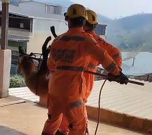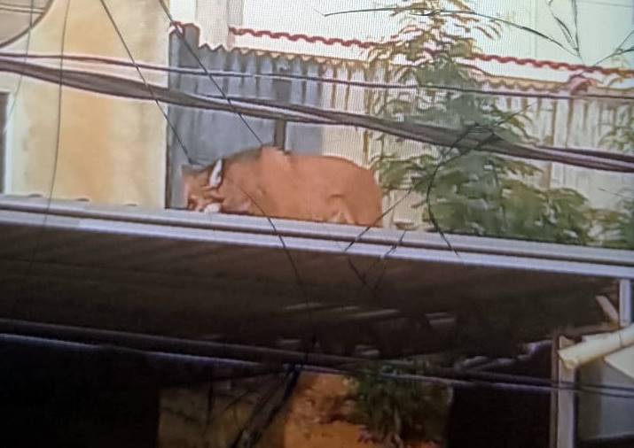 Os bombeiros militares do 7º Pelotão do Corpo de Bombeiros de Leopoldina foram acionados durante a manhã para fazer a captura do animal que percorria telhados de residências da Rua Manoel Paes Tiago, no Centro.