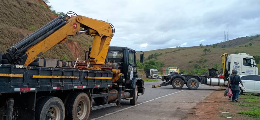 O trânsito precisou ser interditado durante a retirada da carreta, serviço realizado pelo Auto Socorro São Pedro, de Leopoldina.