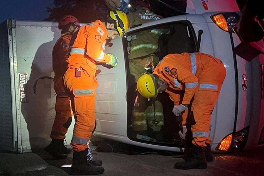 Casal fica ferido após caminhão tombar na BR-116 em Muriaé