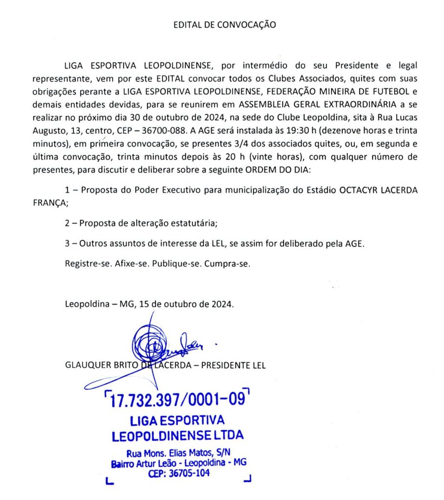 Edital de Convocação Liga Esportiva Leopoldinense