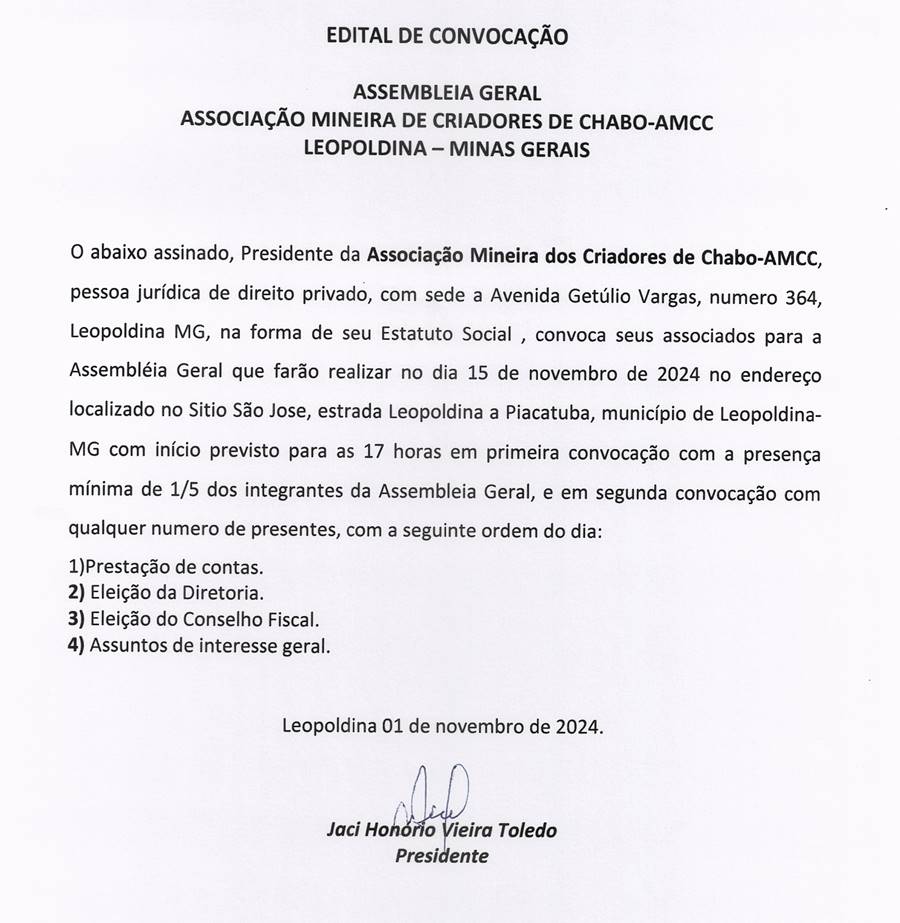 Edital de Convocação Associação Mineira de Criadores de CHABO-AMCC