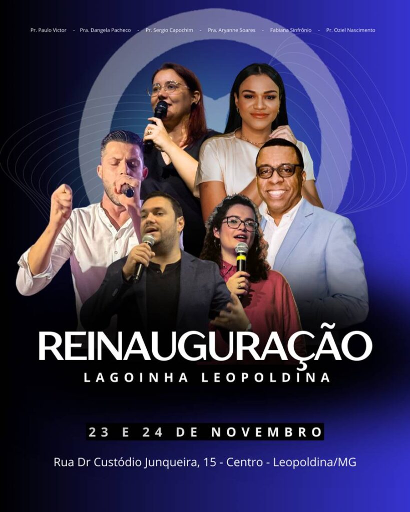 A Igreja Lagoinha em Leopoldina reinaugura neste sábado (23) e domingo (24) seu novo templo localizado no anfiteatro do Shopping Lac na rua Dr. Custodio Junqueira, 15, com acesso ao lado da Drogaria Indiana.