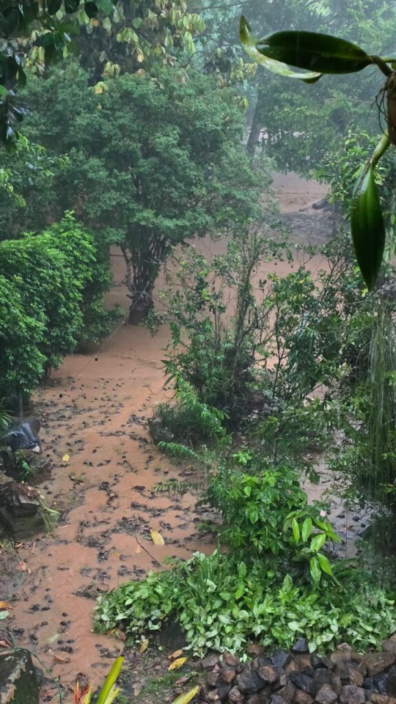 Conforme vídeos e fotos enviados por leitores do jornal O Vigilante Online, o temporal alagou quintais e uma correnteza muito forte foi registrada no córrego do povoado de Arraial dos Montes, que deságua no distrito de Abaíba, no Rio Pirapetinga.
