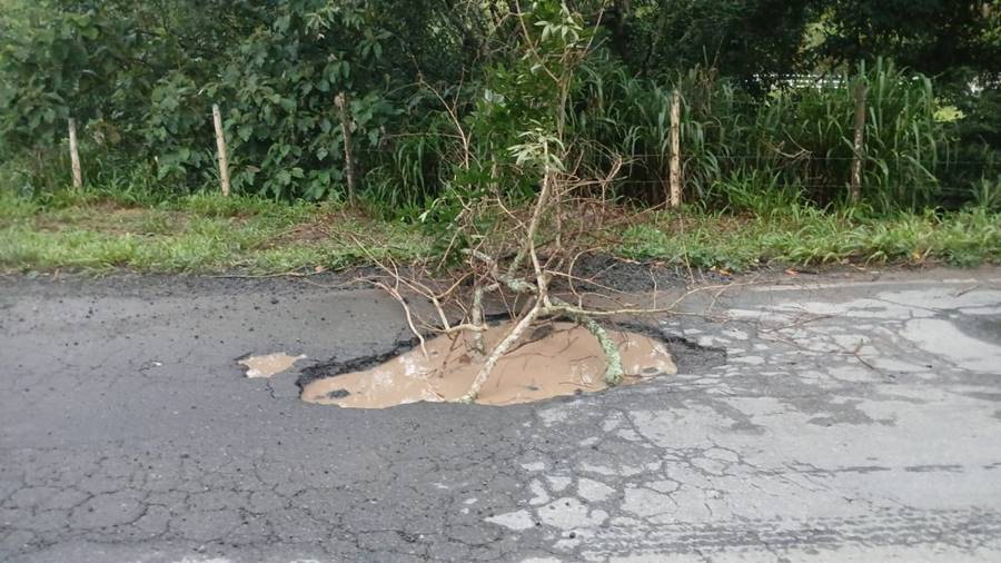 Os motoristas que passam pela BR-120, entre Leopoldina e Cataguases, devem ficar atentos. Uma cratera se abriu neste sábado, 4 de janeiro, e ocupa parte da pista próximo ao segundo radar, no sentido Leopoldina.