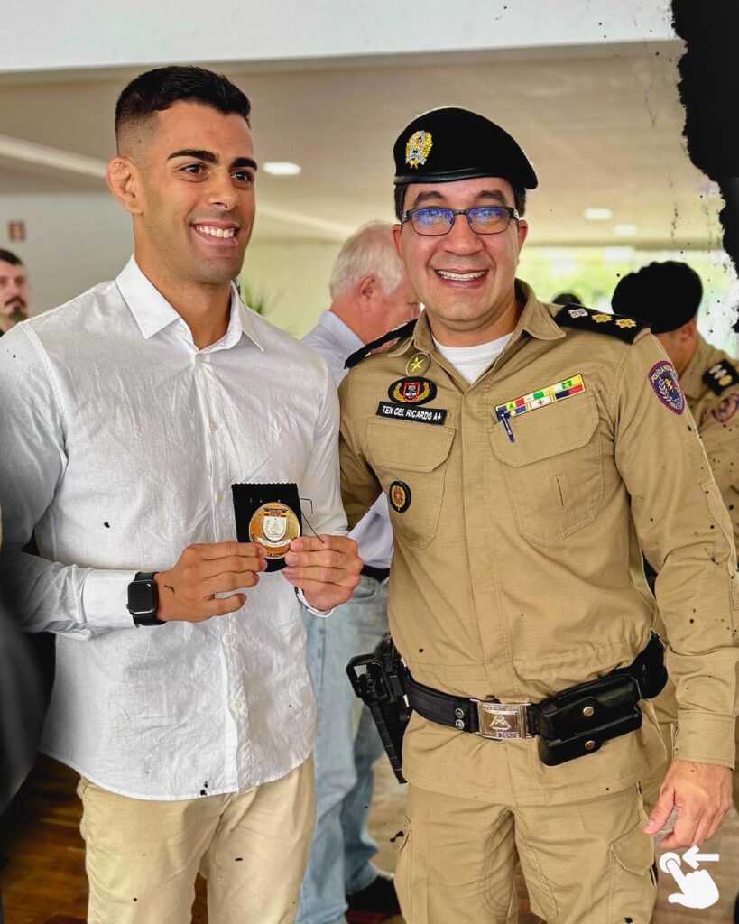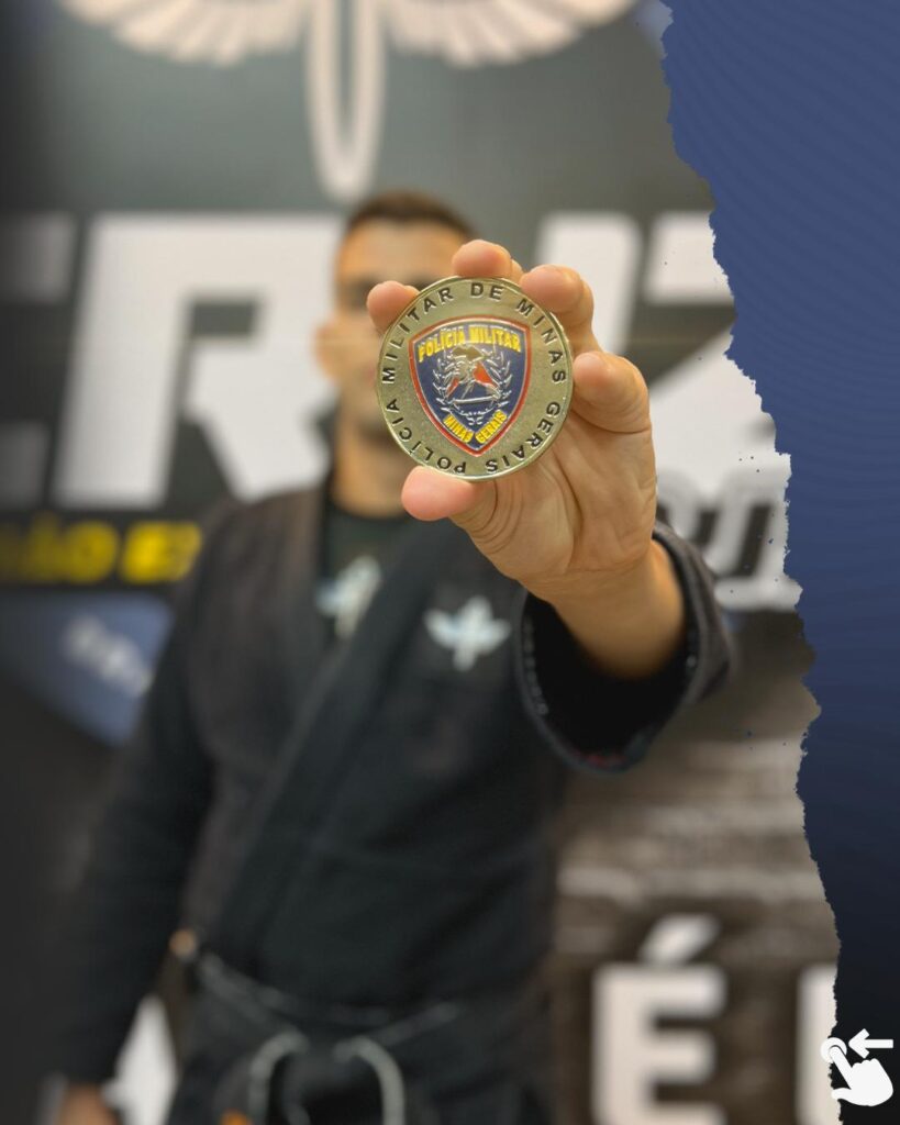 “Em um universo de juízes, promotores, policiais, empresários, entre outros, tive a oportunidade de receber das mãos do Comandante do Batalhão uma Challenge Coin (moeda comemorativa), como reconhecimento do trabalho e parceria feitos junto a Polícia Militar de Minas Gerais”, comentou Júnior Cruz.