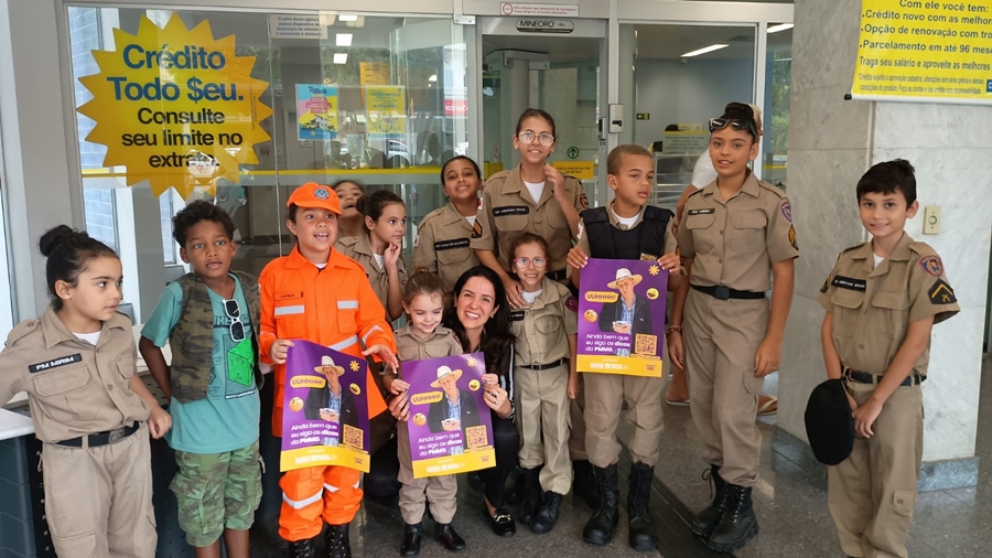 Após as palestras, os militares se dirigiram para o centro da cidade onde, acompanhados das crianças, realizaram visitas às instituições bancárias, bem como prestaram orientações à população, em especial, aos idosos. As crianças auxiliaram na divulgação e afixação de peças gráficas da Campanha “Se deu dúvida, é golpe!