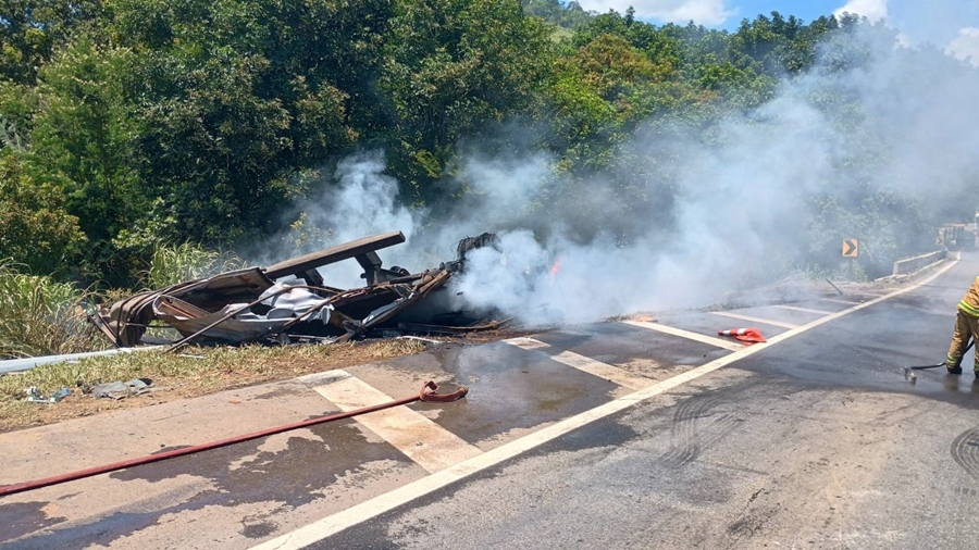 O condutor do veículo veio a óbito no local. Na carreta, também estava um passageiro de 21 anos de idade que sofreu apenas lesões corporais leves.